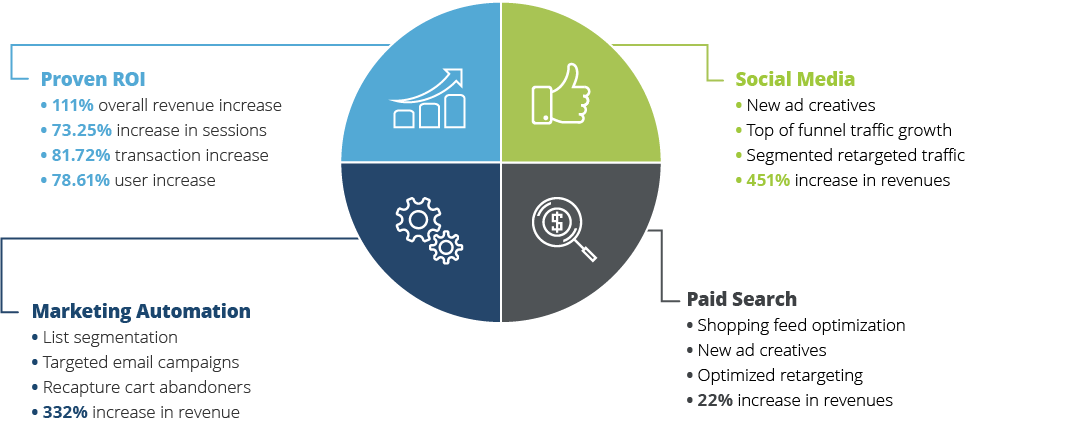 Implemented customized paid media campaigns and channel optimization to drive branded and non-branded traffic to tailored sales pages, resulting in higher revenues, lower cost per acquisition, and increased overall ROI.